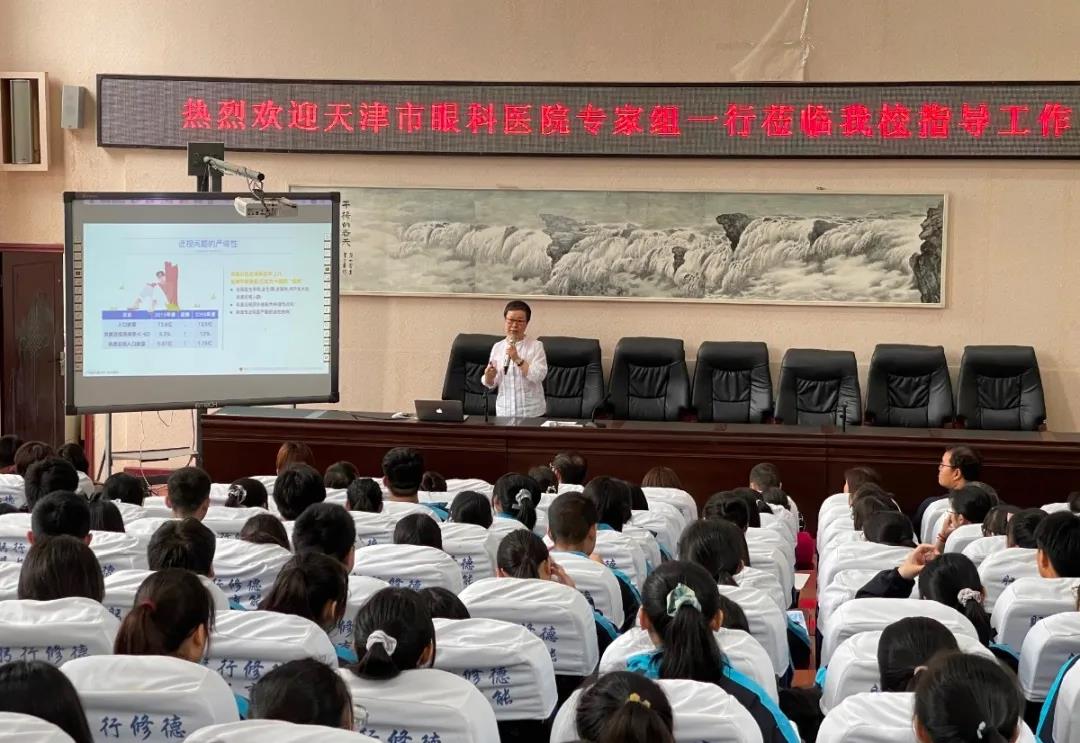 在贡井区旭川中学,调研学生用眼和学习环境标准建设工作情况,并由李丽华主任进行了现场科普宣讲。
