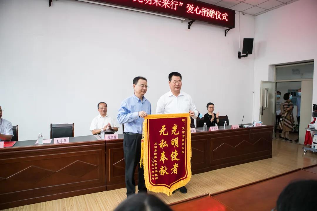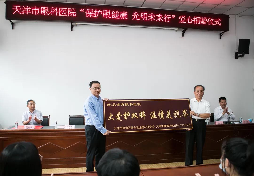 静海区老促会、静海区教育局分别向我院赠送了“大爱护双眸 温情美视界”牌匾和“光明使者 无私奉献”锦旗。