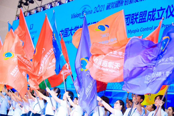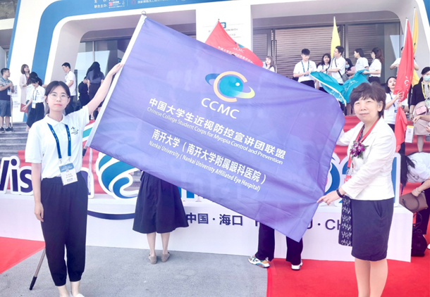 此外,为了推动我国近视防控事业进一步落实,在中国大学生近视防控宣讲团联盟大会上,来自全国首批50所高校的代表参加了授旗仪式,并获得了荣誉证书。会上各代表从专家手中郑重地接过旗帜,薪火传承,志在为中国近视防控事业贡献自己的力量。现场彩旗飘扬,掌声雷动,鼓舞人心。我院与南开大学精诚合作,接过了近视防控的重要一棒,也必将以实际行动进一步落实近视防控相关工作。