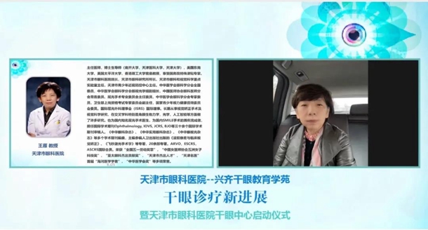 天津市眼科医院王雁院长对参加此次线上会议的专家学者表示衷心感谢。她表示,自2017年成立干眼门诊以来,在院领导的高度重视下,今年,干眼诊疗中心完成了就医环境的升级改建,为患者提供一站式服务。今天让我们共同见证我院干眼诊疗中心的发展与提升。