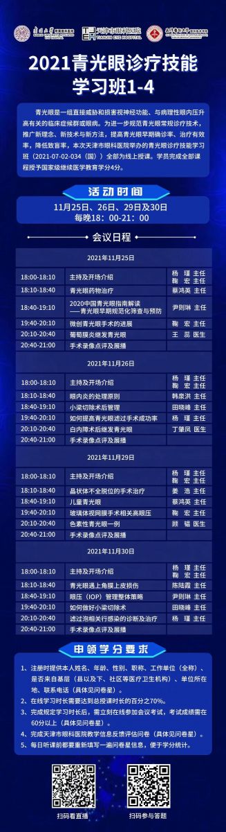 本次青光眼诊疗技能学习班,邀请天津市眼科医院青光眼、玻璃体与视网膜病、外伤及角膜病等专业多学科知名眼科专家进行授课。进一步规范青光眼常规诊疗技术,提高青光眼早期确诊率、治疗有效率、降低致盲率,推广新理念、新技术与新方法。