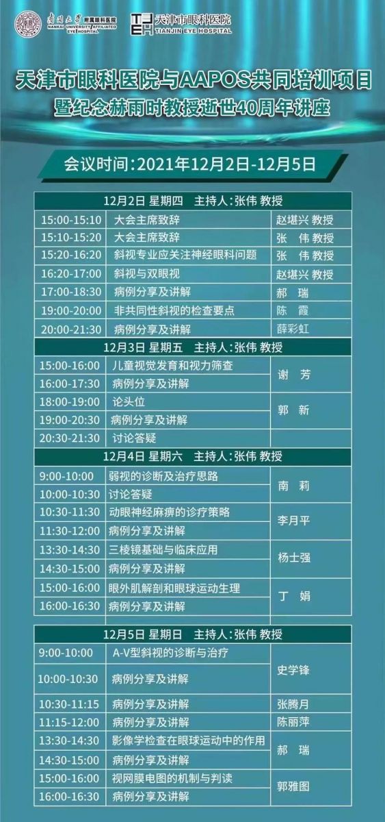 以下为赫雨时教授开创和发展我国斜视事业纪念学术活动日程。