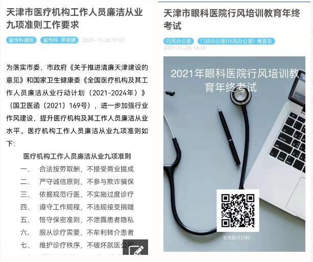 坚持科学考评、以考促学,在院内OA系统开展清廉医院宣传,同时组织行风培训教育年终考试。以清廉为标考评为尺,纵深推进清廉医院建设,不断提升“清廉医院”建设实效。