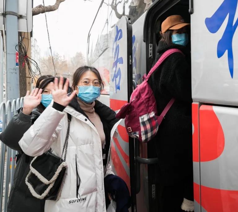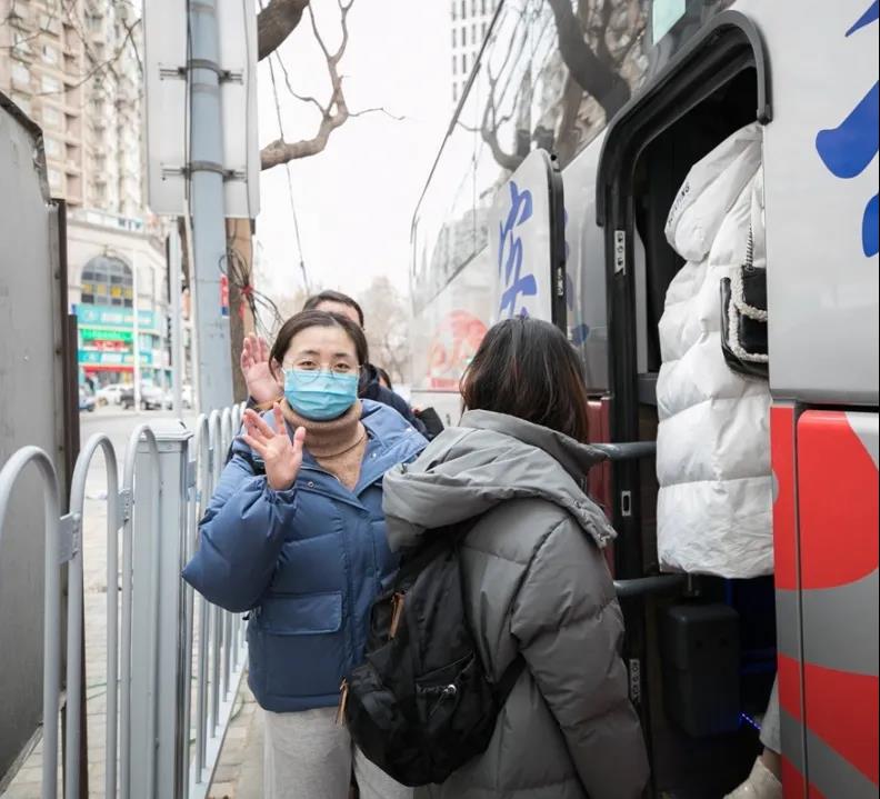 动员会后,和平区支援人员立即前往工作岗位。津南区支援人员一行52人乘坐大巴,奔赴津南。院领导到场送行,殷切祝福大家注意安全,平安归来!