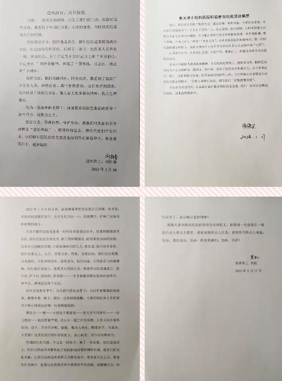上下同欲者胜,风雨同舟者兴。感谢眼科医院全体退休职工的奉献精神和积极支持。我们坚信,我们一定能够打赢天津疫情防控阻击战!