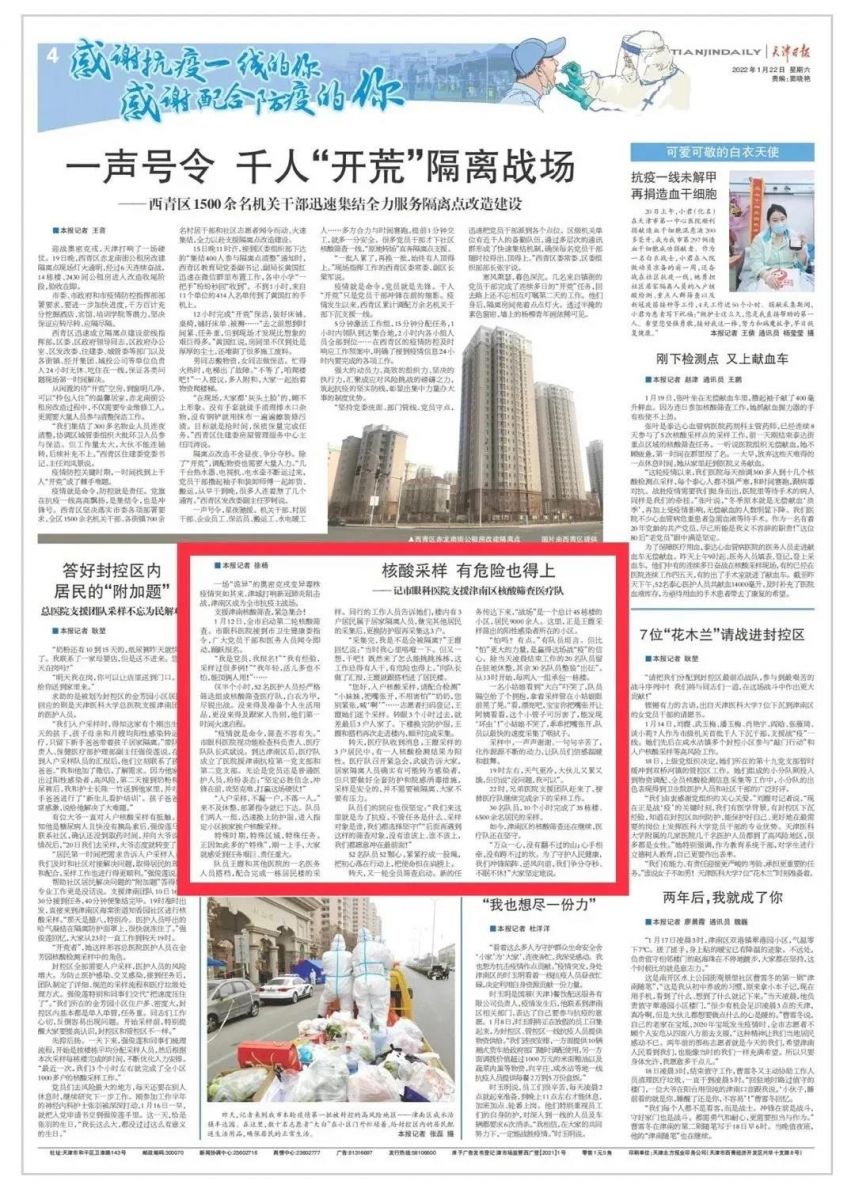 核酸采样 有危险也得上——记我院支援津南区核酸筛查医疗队