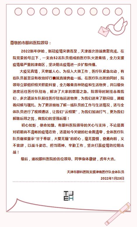 感谢有你 |一封来自市眼科医院支援津南医疗队全体队员的感谢信