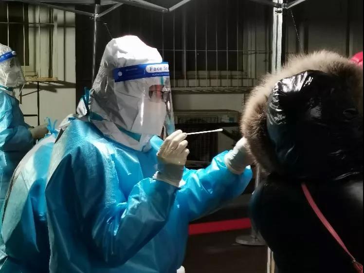 没等大家吃完面,又接到了支援同泽园的筛查工作。天寒风骤,经过一夜的奋战,大家体力及精力基本透支,但看了看手里的这碗热面条,回想起临行前出征的誓言,肩上的这份责任必须要扛起来。