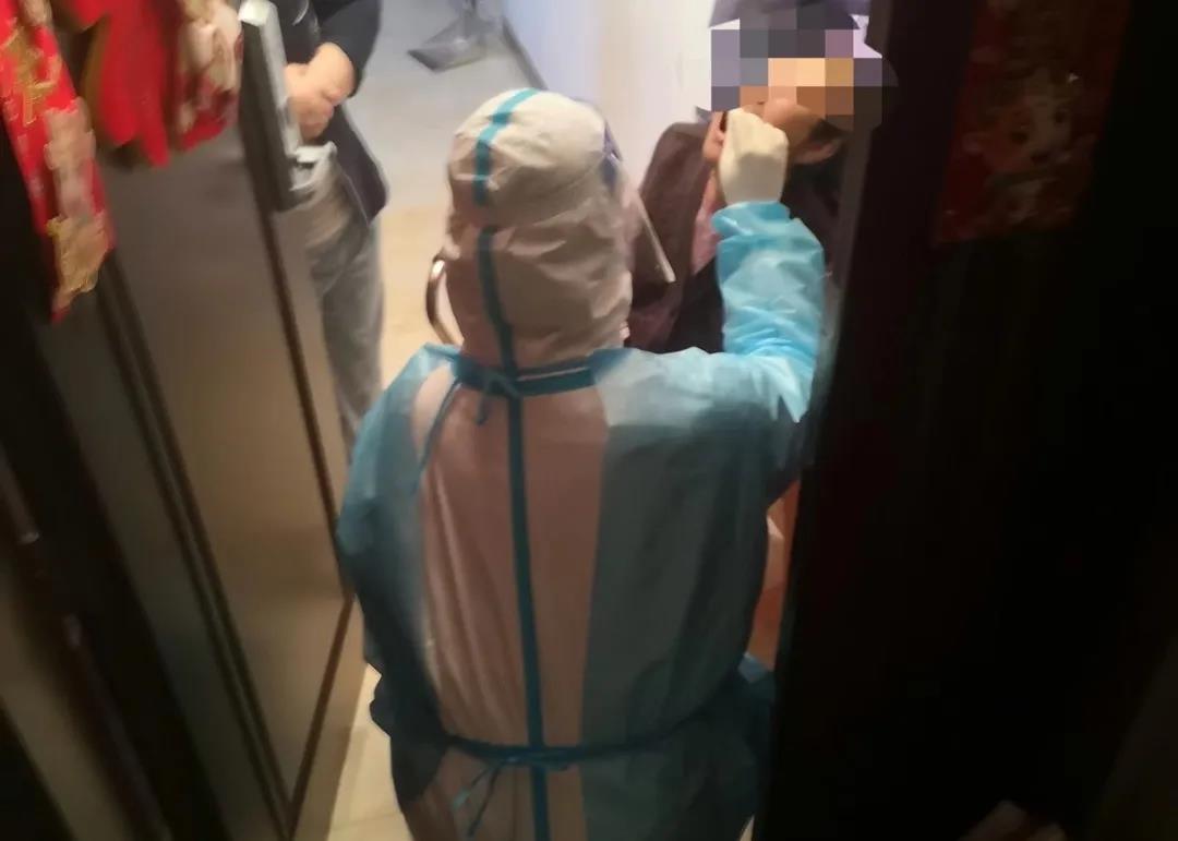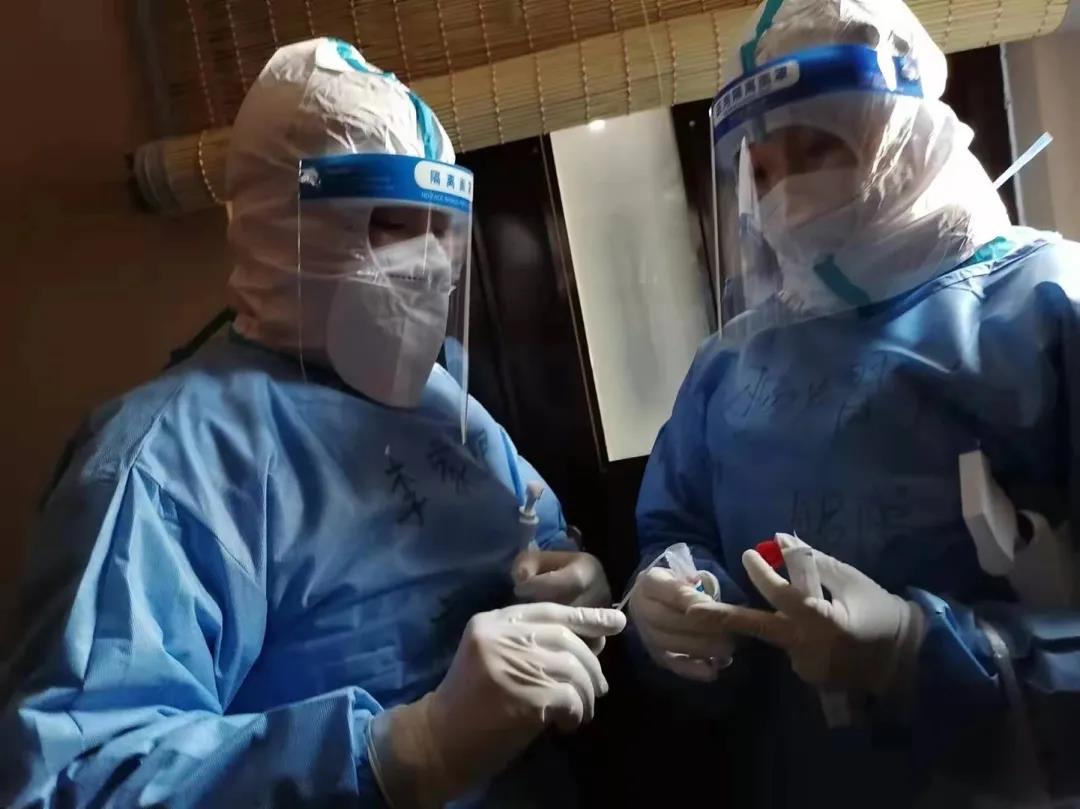 入户采集,我们依然要面对重重挑战。首先,入户温度过高,防护面屏一直起雾,在昏暗的环境下增加了采样的难度;其次,楼道空间狭窄,在保证采样标准的前提下,还要时刻注意不能被居民的杂物割破防护服,防止职业暴露;再次,深夜穿梭在居民楼之间,几乎没有任何照明的条件下加上起雾的防护面屏,使得行走十分困难。另外,为了能够按时按质完成任务,我们必须全组人员一起上。在执行任务的过程中,我最担心的就是手机铃声响起,非常紧张我的团队伙伴会遇到棘手问题,而我又无法及时为他们提供帮助。