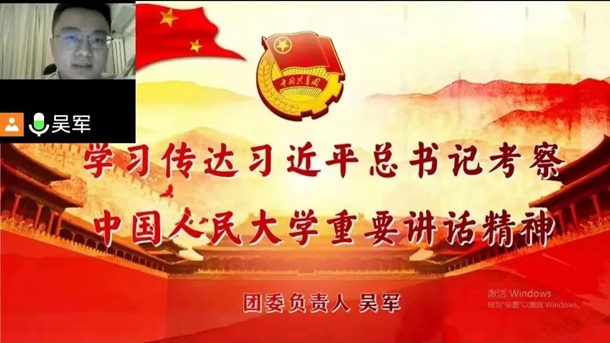 活动在青春洋溢的团歌声中拉开序幕。首先,团委负责人吴军带领大家集体学习观看了4月25日习近平总书记在中国人民大学考察调研时作重要讲话的新闻视频,并为大家梳理了讲话精神的重点,号召团员青年要认真领会习近平总书记重要讲话的丰富内涵和实践要求,积极向援沪医疗队学习,立足本职岗位,履行好时代赋予我们的使命。