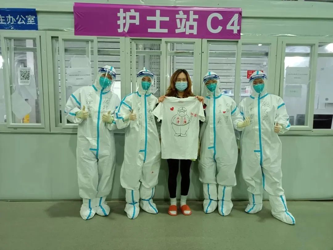 “付出都是值得的,这期间也收获了很多温暖的时刻。”王琦妙说,一张张小纸条,一封封感谢信,字里行间都饱含患者对医务人员最真诚的感激,让大家备受感动。“最让我感动的是一位即将出舱的小姑娘,她洗干净一件白色T恤,问我们能不能在上面画一幅画,她想要留个纪念。”而画上的“天津上海”四个字,也记录下这段温暖守护的日子。
