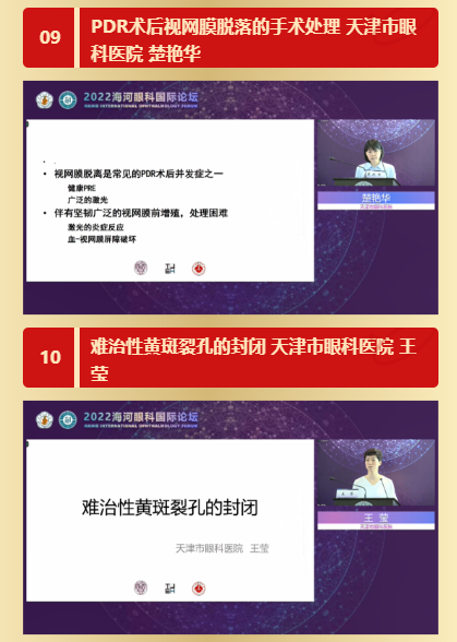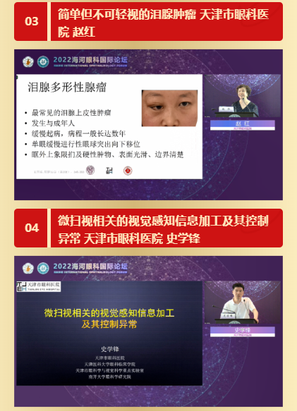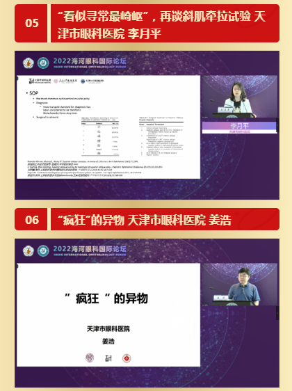 在会议的第二时段,由天津市眼科医院苑晓勇主任和李月平主任作为主持嘉宾,天津市眼科医院陈松教授、苑晓勇主任、赵红主任、史学锋主任、李月平主任、姜浩主任、韩梅主任、陈陆霞主任、楚艳华主任、王莹主任、南莉主任、孙瑞强主任、杨瑾主任及鞠宏主任各专业的学术骨干,结合自身研究领域,分享手术技巧及临床诊疗经验,引起广大听者共鸣,无不直呼过瘾。