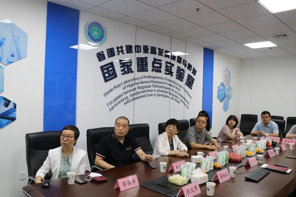 7月2日下午,应省部共建中亚高发病成因与防治国家重点实验室主任温浩教授邀请,王雁院长带领医疗队一行顺访了设置于新疆医科大学第一附属医院的实验室,与相关专家针对眼科及相关交叉学科科研课题、项目合作进行了友好交流。
