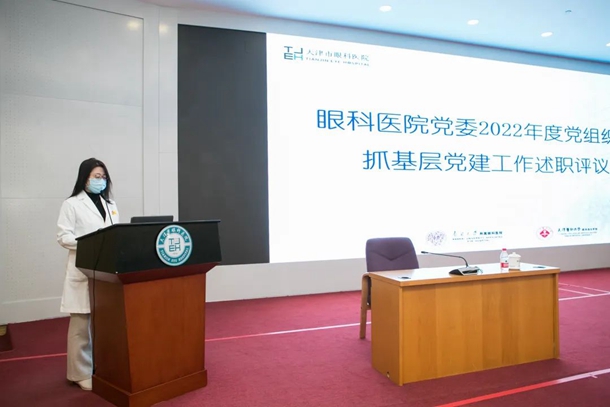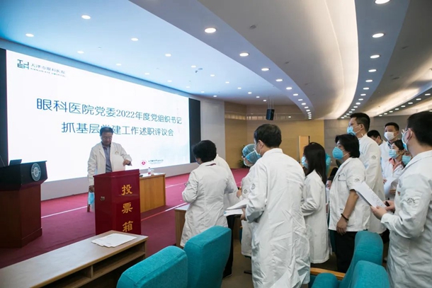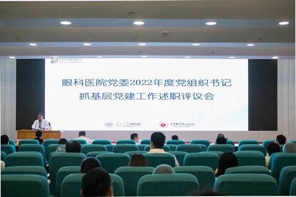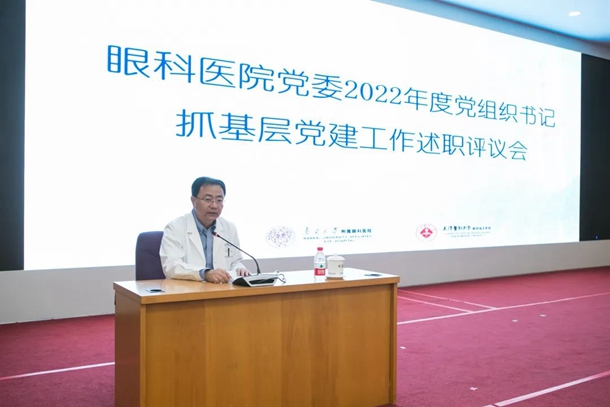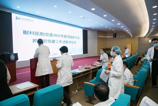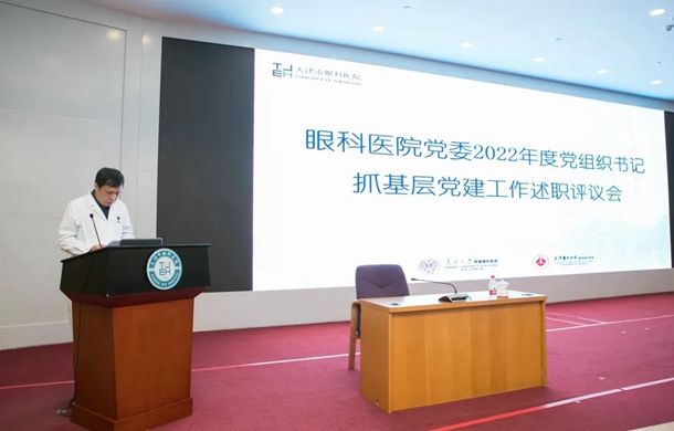 党组织书记抓基层党建工作述职评议采取现场述职和书面述职相结合的形式进行。会上,后勤管理党支部书记、门办党支部书记、网络信息中心党支部书记、六病区党支部书记和视光中心党总支书记进行了现场述职,其他党支部书记采取书面形式述职。