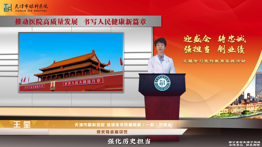 积极开展女职工新时代巾帼宣讲活动,天津市眼科医院玻璃体视网膜病科(一科)负责人、天津市卫生健康系统优秀共产党员王莹同志就专题三“强化历史担当 争创一流业绩”开展主题宣讲《推动医院高质量发展 书写人民健康新篇章》,带动广大女职工将党的二十大精神融入卫生健康事业,争做新时代的奋斗者和追梦人,营造人人学先进争先进的良好氛围。