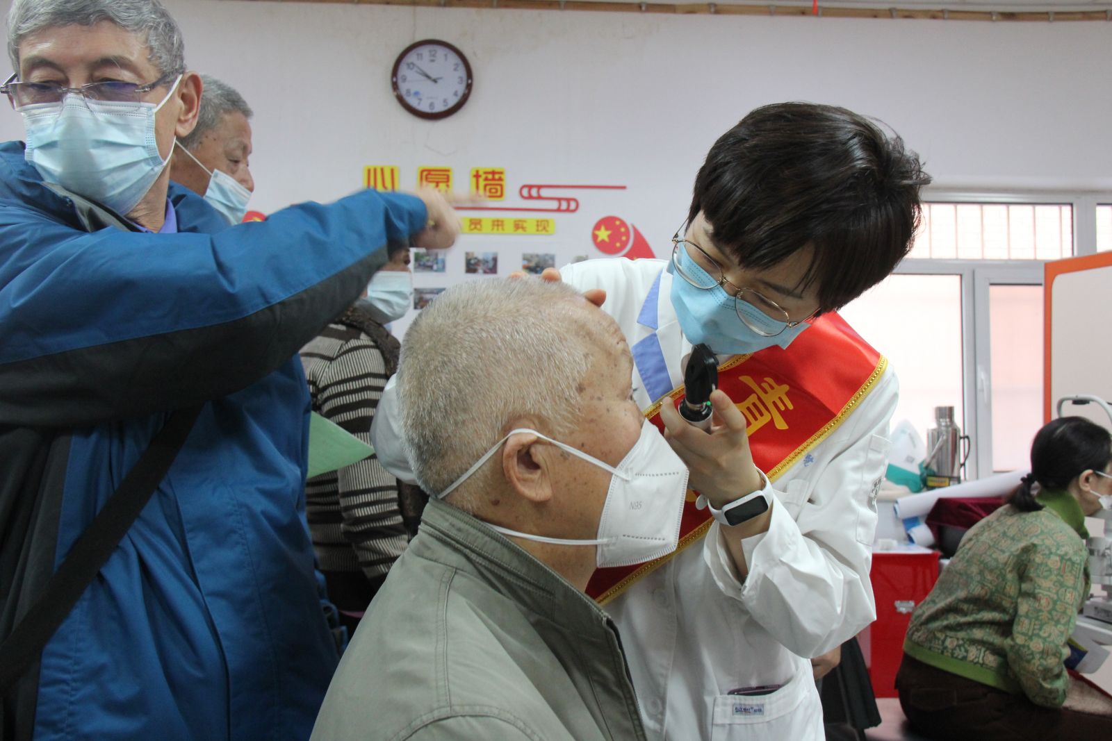 活动现场,前来咨询、问诊的居民络绎不绝,有的早早就来到社区活动中心排队。医护志愿者通过目力表、裂隙灯、电脑验光仪、眼压计等专业设备为居民进行眼部检查,针对检查情况进行初步诊断,为患有眼疾的居民提出进一步的治疗建议,并耐心倾听解答居民提出的眼部健康咨询问题。在排队等候间隙,志愿者还免费发放青光眼、老年性白内障等眼病科普宣传手册,让更多居民了解老年人常见眼病情况,普及眼睛保健治疗相关知识。并指导有就医需求的老年居民使用智能手机预约挂号,方便就医。