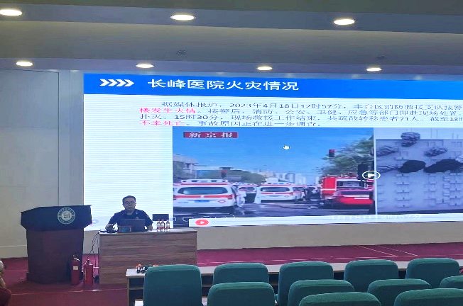 为加强员工消防安全意识,消防支队专家重点围绕消防安全法律法规、医疗机构特点、结合警示教育案例,对北京长峰医院火灾等典型案例进行分析讲解,向医护人员详细讲解如何扑救初期火灾,消防器材如何使用、维护,发生火情后如何组织人员疏散逃生等消防安全常识,切实提高医疗单位的应急处置能力。