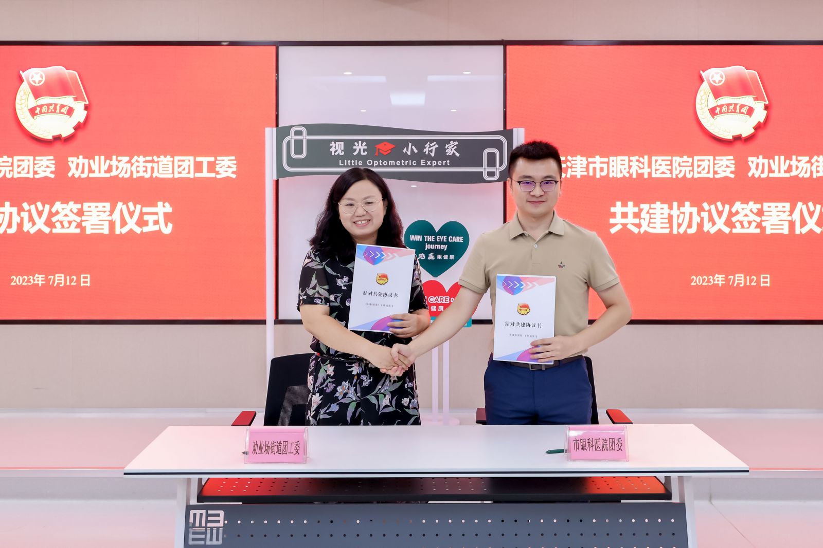 为深入贯彻落实党的二十大精神,进一步推动主题教育走深走实,积极响应团市委“汇聚青春动能,建功十项行动”的号召,7月12日上午,由天津市眼科医院、和平区团委联合主办的“视光小行家暨院街团委共建签约仪式”,在天津市眼科医院视光中心和平路分中心举行。