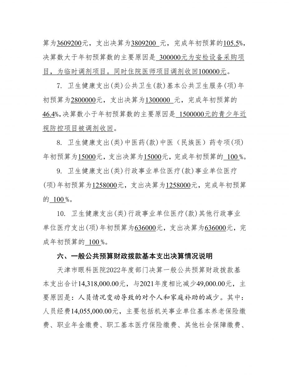 天津市眼科医院2022年部门决算和“三公”经费决算公开