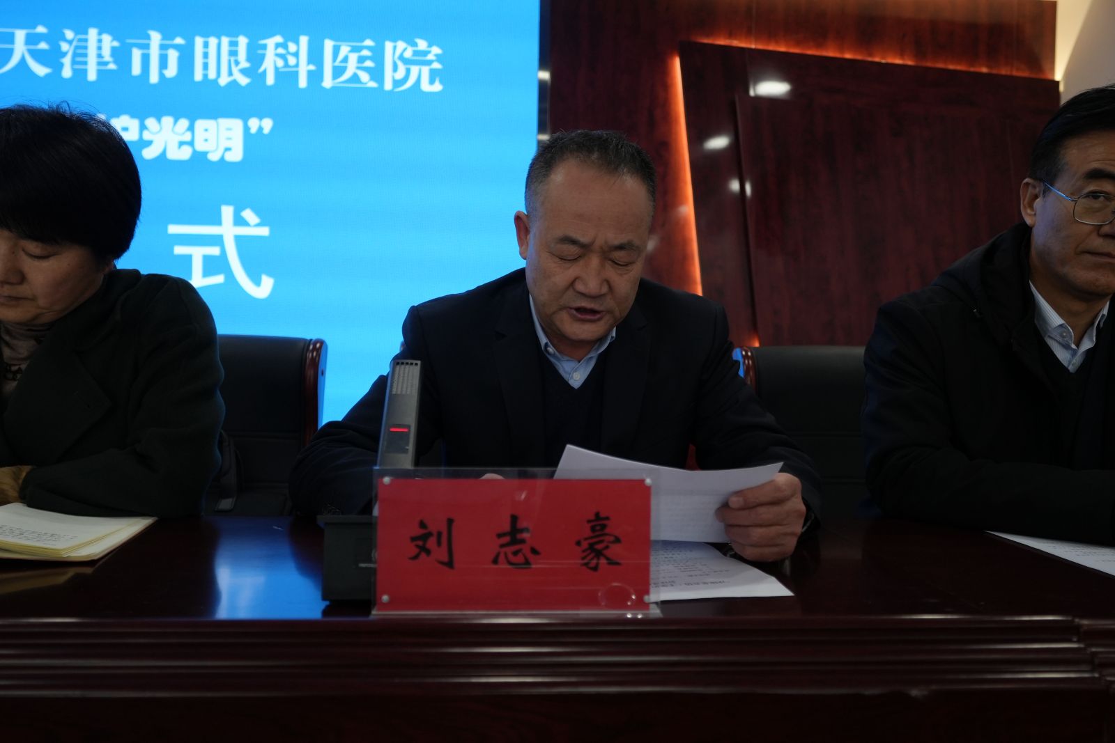 天津市眼科医院党委书记王春革发表讲话。他表示,天津市眼科医院始终认真贯彻党的二十大精神,落实习近平总书记关于乡村振兴战略的重要指示,按照市委市政府的部署,天津市卫生健康委的要求,做好对口帮扶工作。充分发挥自身专业优势,提升医院的公益服务,更好地服务当地百姓,以实际行动优化眼科医疗资源,推动优质医疗资源下沉。