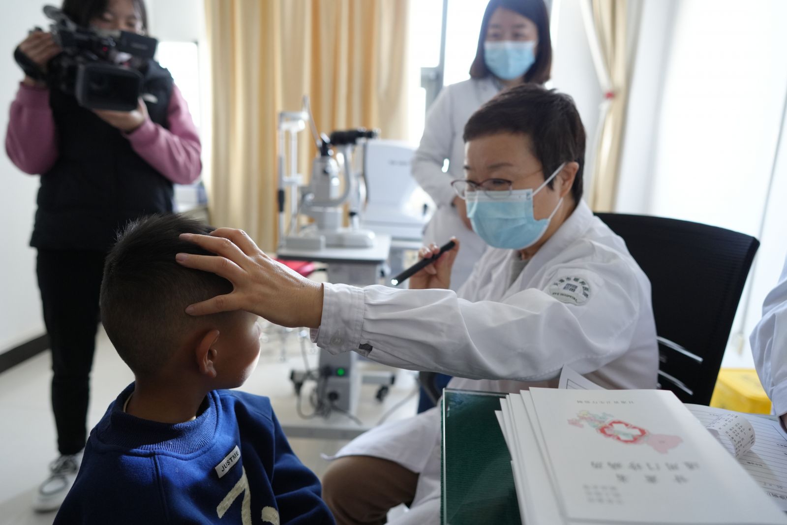 与此同时,伴随着晨间第一缕阳光,天津市眼科医院视光团队迈进甘肃庆阳环县习仲勋红军小学开展校园视力筛查项目。依托前期“光明小屋”项目捐赠的眼健康筛查车和专业检查设备,团队积极投入到为100余名困难家庭学生及教师的免费验光筛查工作,并捐赠了配装眼镜。