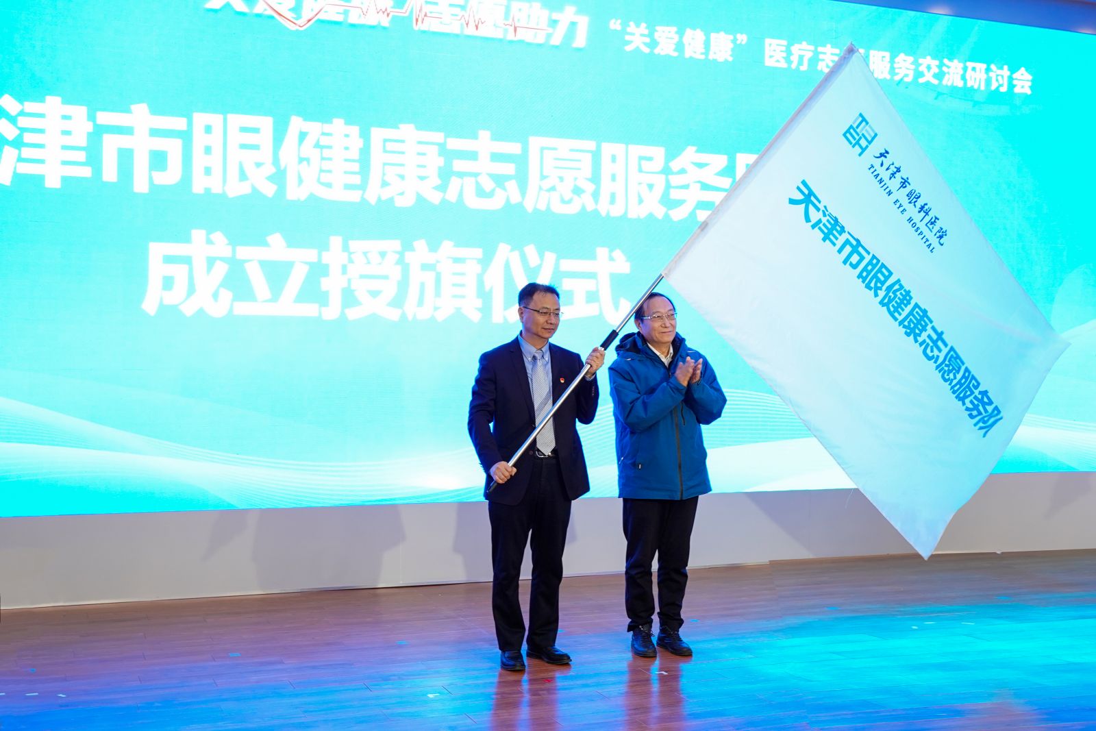 研讨会上,举行了“关爱健康”医疗志愿服务培训基地揭牌仪式和“天津市眼健康志愿服务队”成立授旗仪式,并为部分医疗志愿者代表颁发了“关爱健康”医疗志愿者证书。