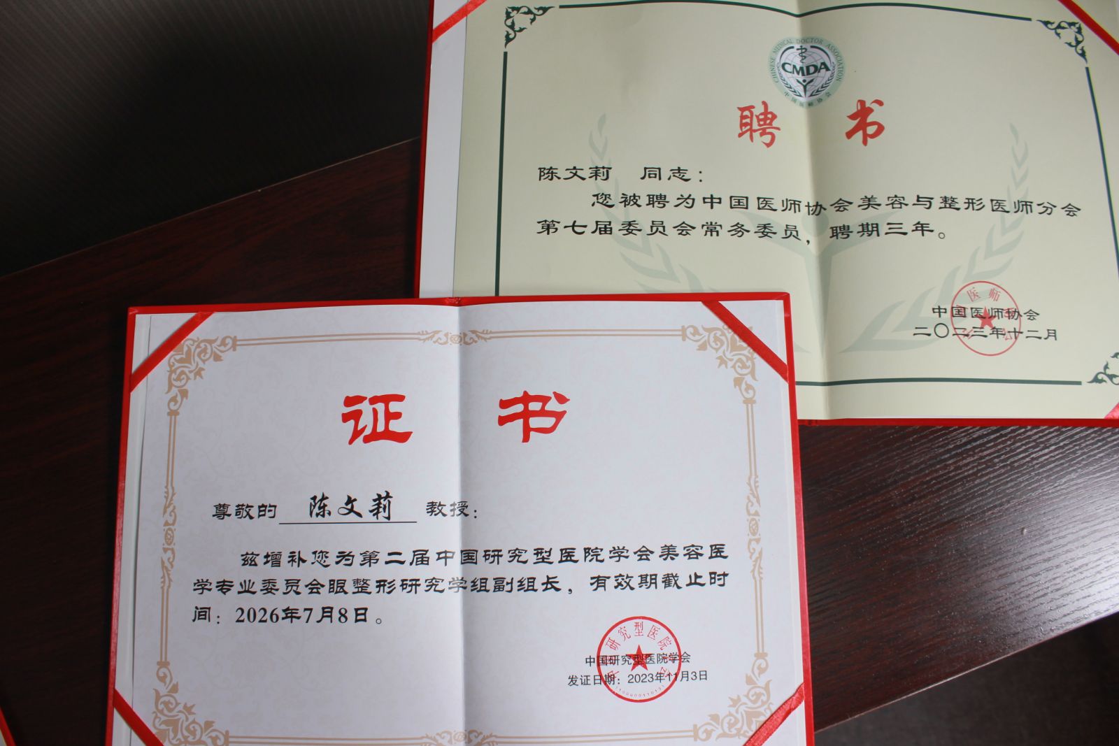 在第二届中国研究型医院学会美容医学专业委员选举大会上,陈文莉主任当选常务委员并担任眼整形研究学组副组长。
