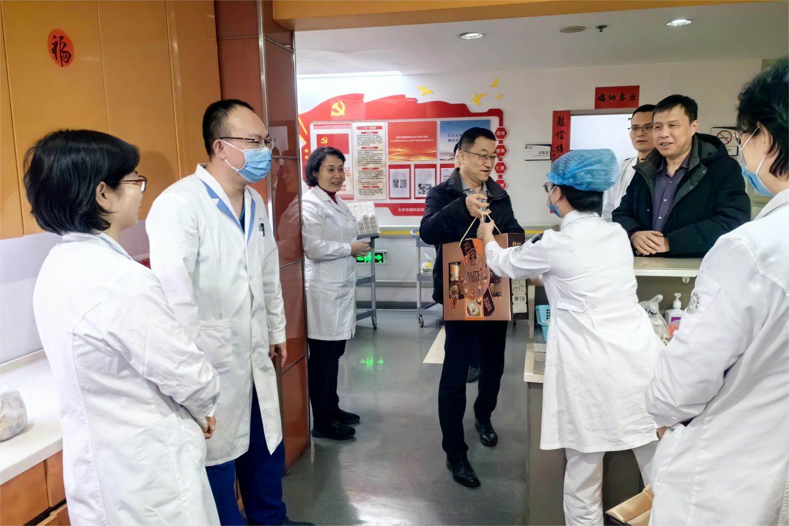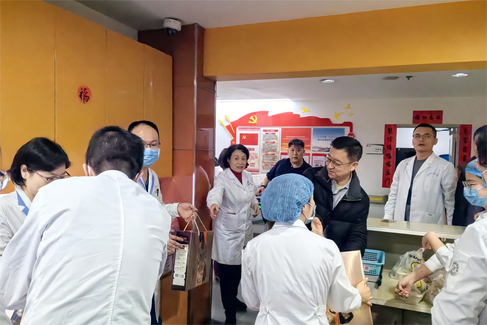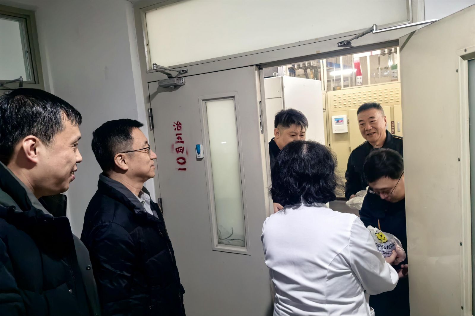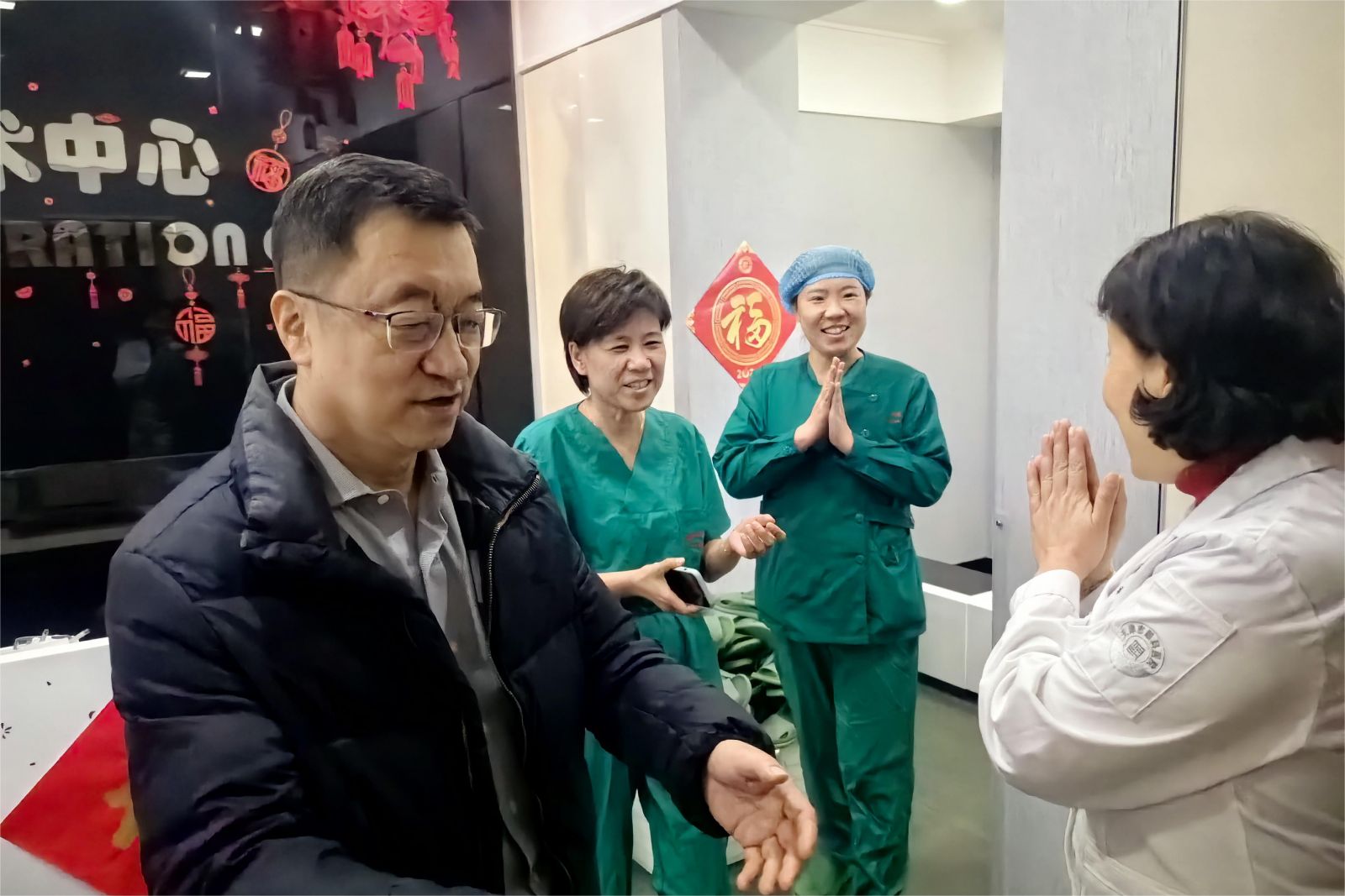 院领导亲切慰问除夕夜值守一线的全体医务人员,对所有工作人员表示衷心感谢,为大家送上诚挚的新春祝福,并叮嘱大家要紧绷医疗安全这根弦,同时也要注意劳逸结合,以饱满的精神状态投入到工作当中,勉励大家在新的一年里,持续牢固树立以病人为中心的服务宗旨,全力守护人民群众的眼健康。