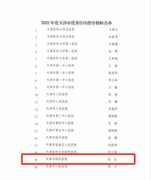 天津市眼科医院2023年度住培工作创佳绩 张伟教授等多人获荣誉称号