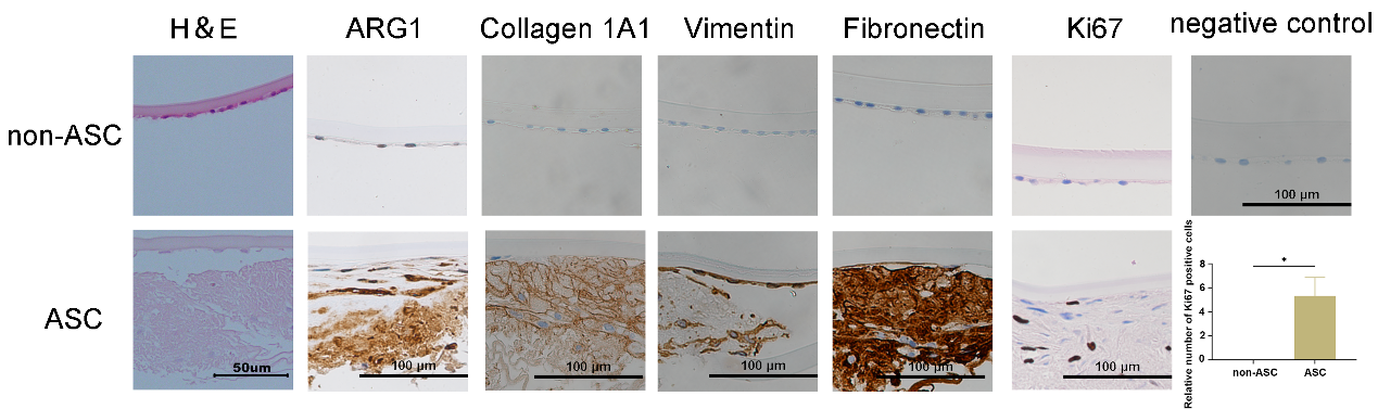 图1. 在ASC患者中ARG1, collagen 1A1, vimentin, fibronectin和Ki67的表达增加