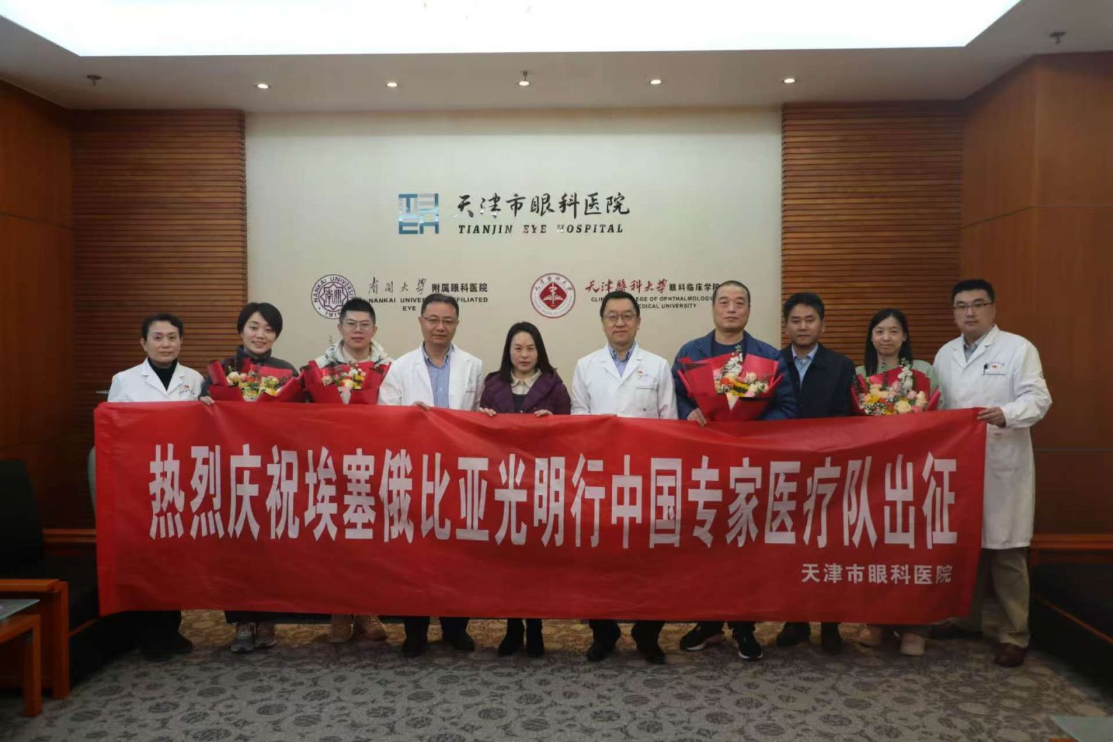 专家团队由张伟院长、韩泉洪副院长带队,分别于2024年11月22日、12月28日分两批飞赴受援地埃塞俄比亚首都亚的斯亚贝巴,市卫健委国际合作交流处叶旨薇处长、天津市眼科医院党委书记王春革、纪检书记钟艳颖二位同志及人事部门相关人员前往送行,勉励我们的队员以仁心仁术造福当地人民,以实际行动讲好中国的故事,为推动构建人类卫生健康共同体做出更大的贡献。