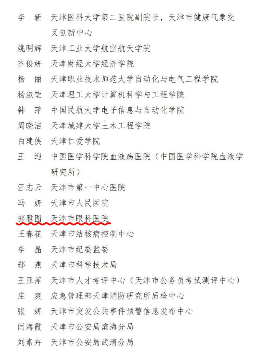 天津市眼科医院郭雅图荣获2023-2024年度“天津市三八红旗手”称号。