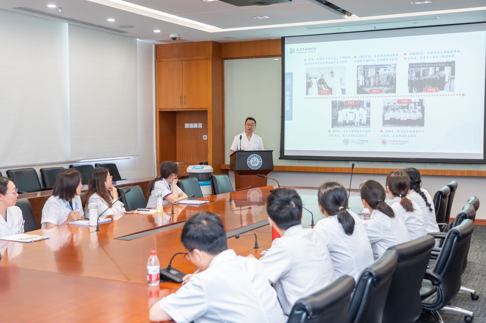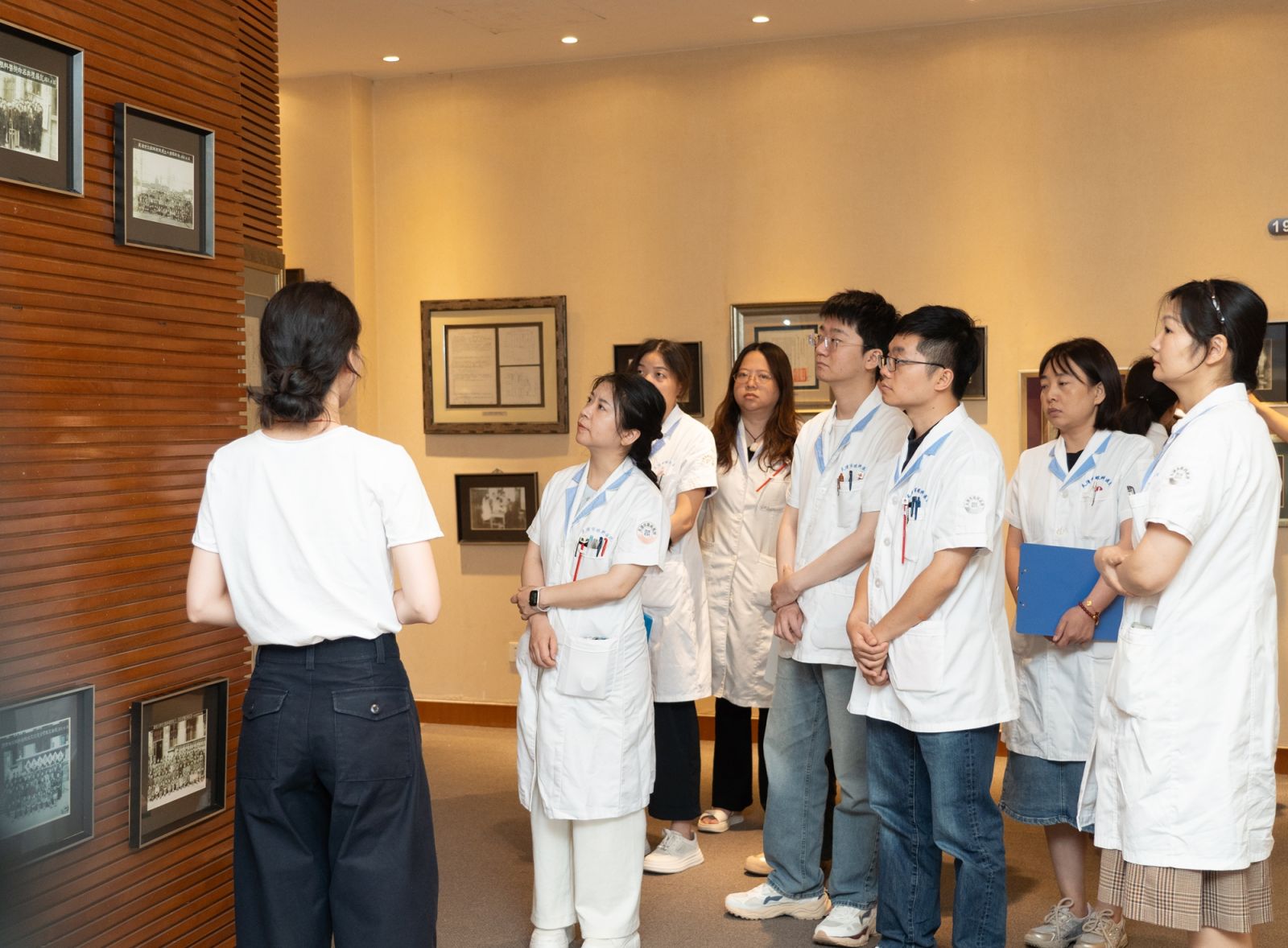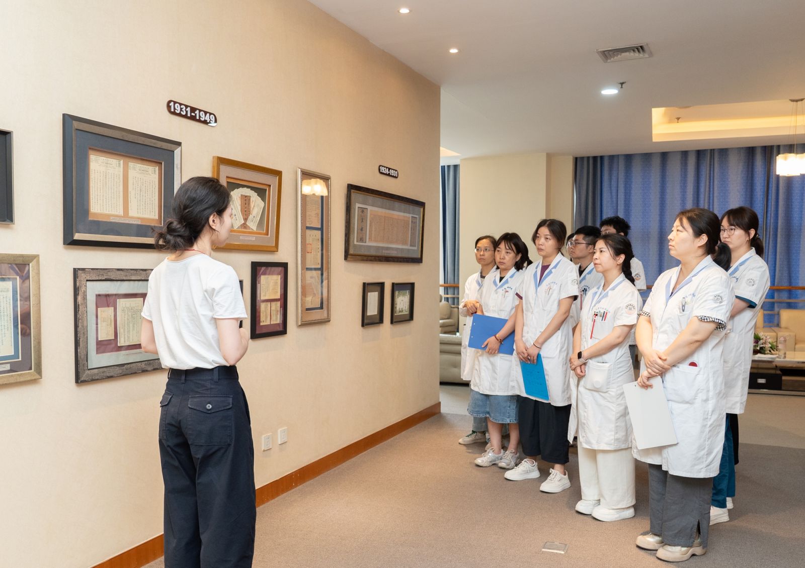 院长办公室工作人员为大家介绍我院发展历史。院史馆丰富的图文资料使参观者深深感受到眼科学前辈心系国家的赤子情怀,崇高至善的进取精神,激励着后来者的不断创新。