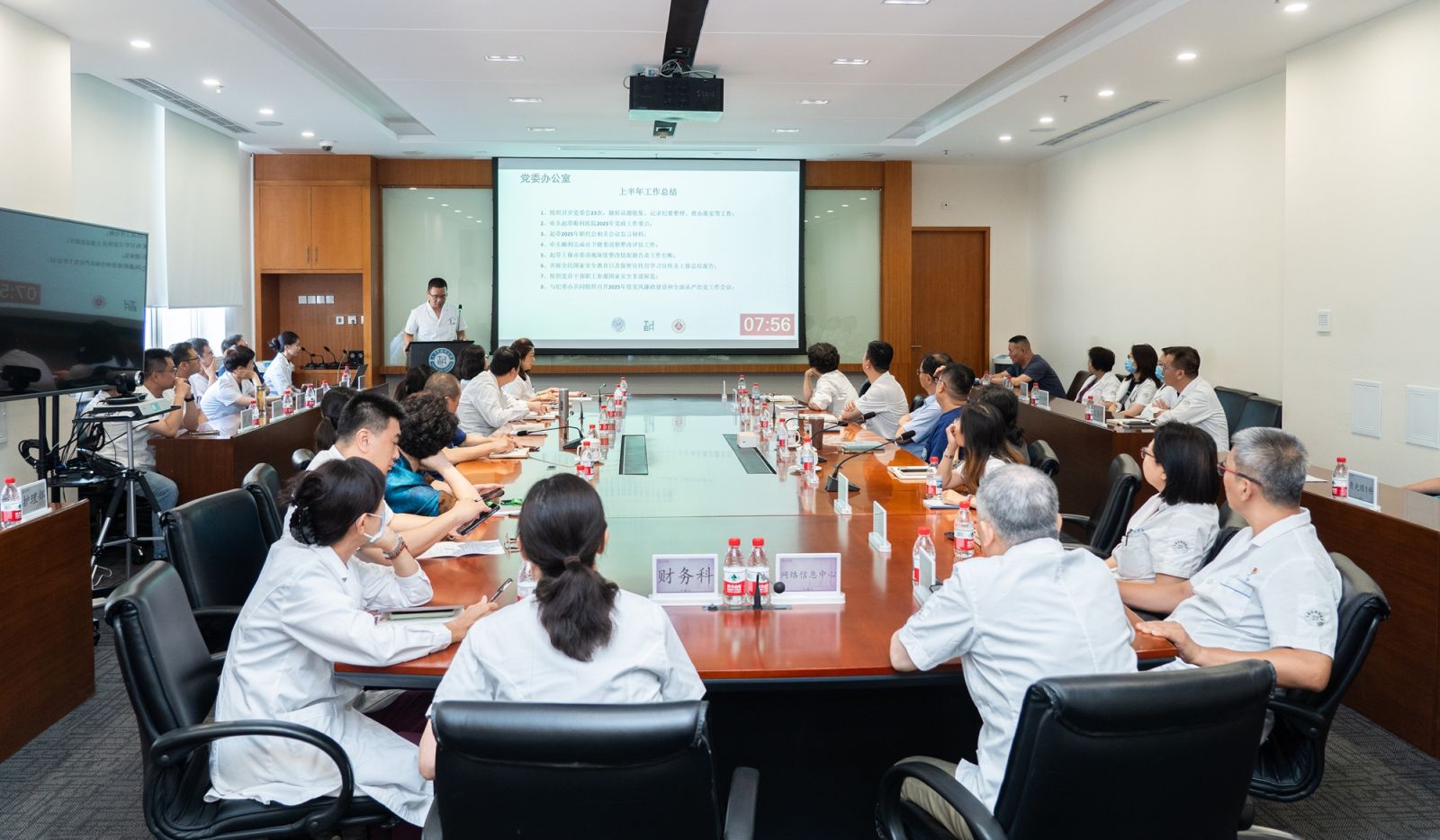 在点评及总结发言中,院领导对各职能科室的上半年工作成效给予充分肯定。强调当前医院正处于快速发展与变革的关键阶段,职能科室是医院高效运转的支持体系,各科室要把思想统一到医院整体事业发展大局上来,围绕“十四五”规划收官和“十五五”规划编制,明确努力方向,积极主动担当,聚焦市卫健委提出的“未来5年建成全国医学高地、10年建成北方医学中心”的发展目标,精准发力、协同发力、持续发力,为医院高质量发展再创新功,为医院眼健康事业大厦奠定坚实基础。