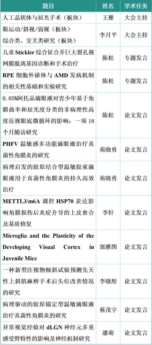 作为中国眼科领域的重要代表,天津市眼科医院多位眼科医生参加了此次大会,并在大会上承担了多场重要的学术任务,包括主持和专题发言,为学术交流增添了丰富的内涵和深度。他们在大会期间积极参与了多场学术报告、研讨会和交流活动,分享了医院在眼科学和视觉科学领域发展方面的最新科研成果和临床实践经验。