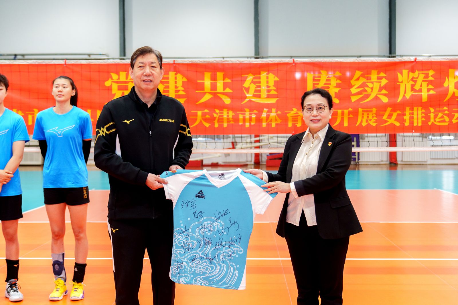 天津女排功勋教练王宝泉代表天津女排,将富有纪念意义的全队签名比赛服赠送给眼科医院,以表达对双方合作的诚挚感谢。