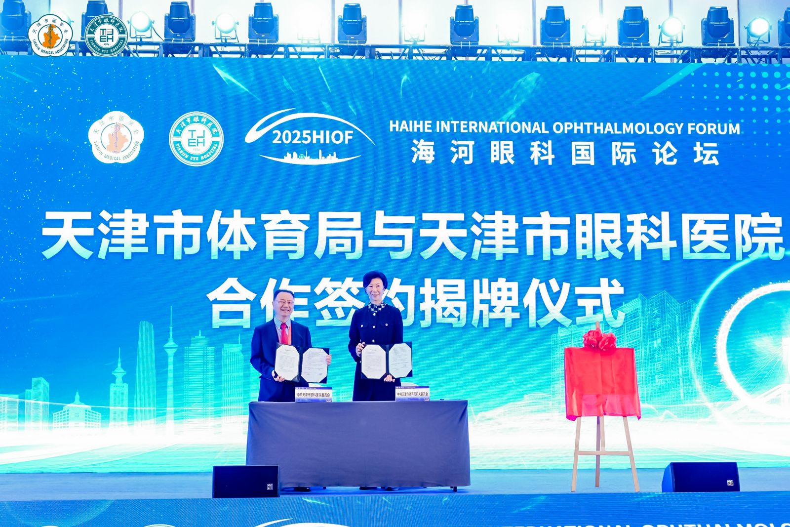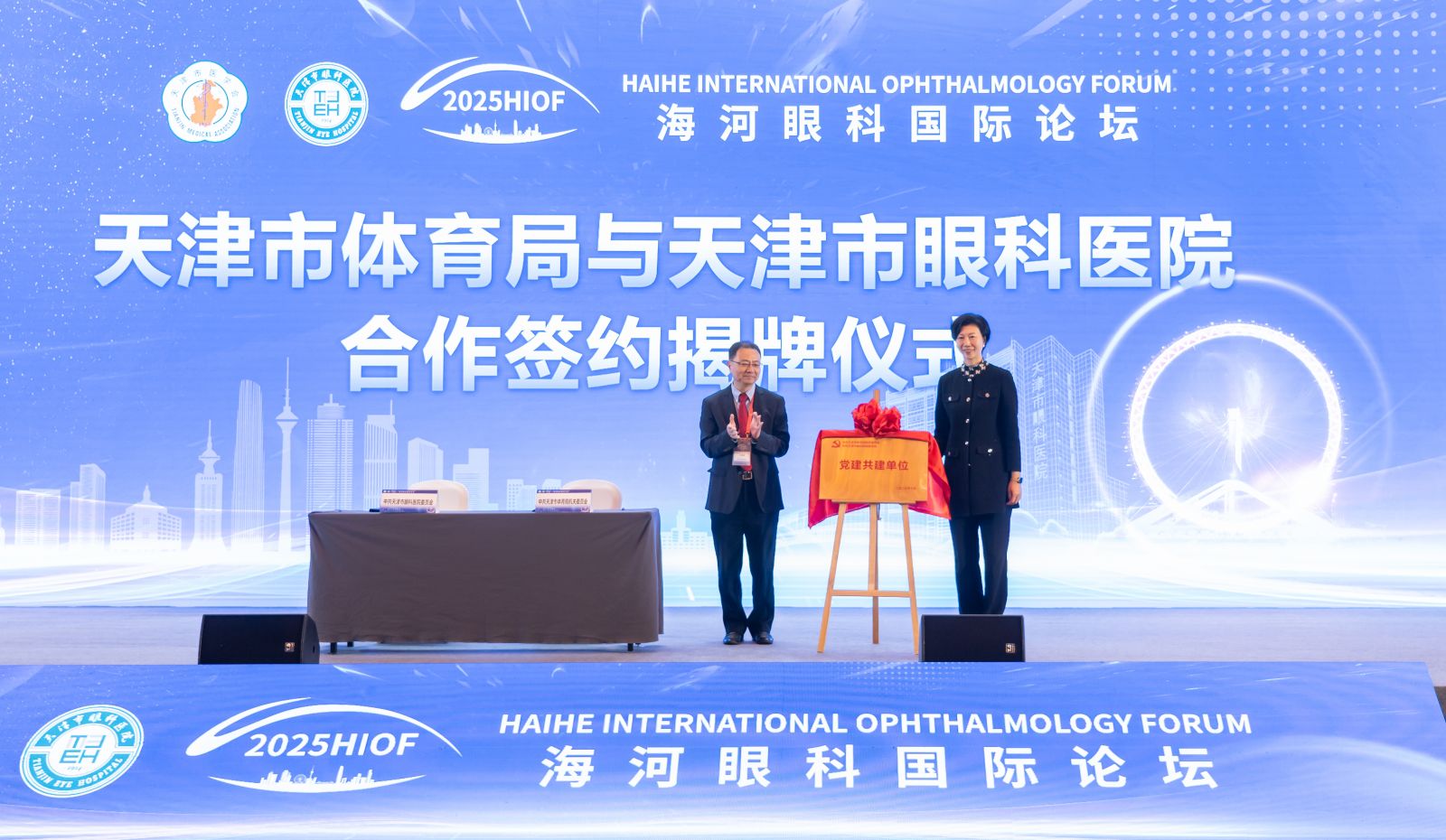 2025年10月24日上午,在“2025海河眼科国际论坛”开幕式现场,天津市体育局与天津市眼科医院隆重举行“党建共建单位”与“天津市运动视觉训练中心”签约揭牌仪式。仪式由天津市眼科医院党委书记王春革主持。天津市体育局副局长李珊、机关党委办公室、训练竞赛处相关负责同志、天津市眼科医院领导班子成员及相关部门负责同志出席仪式,共同见证这一体卫融合的创新实践。