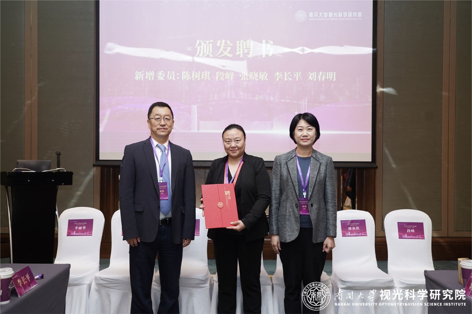 为汇聚多元学术智慧,强化科研方向引领,我院近日正式增聘五位来自不同专业领域的学者担任学术委员。他们分别是国家重点研发计划首席科学家、南开大学物理科学学院陈树琪教授,南开大学医学院人工智能医学专业、介入脑机接口专家段峰教授、天津市眼科医院副院长张晓敏教授、天津医科大学流行病与卫生统计学院李长平教授以及原美国太平洋大学视光学院刘春明教授。此次重磅引入,旨在借助委员们深厚的专业造诣与前瞻视野,为我院各研究课题的把关与创新提供强力支撑,从而驱动视光研究院实现长足、稳健的高质量发展。由张伟主任委员和杨爽副主任委员共同为新任委员颁发聘书。