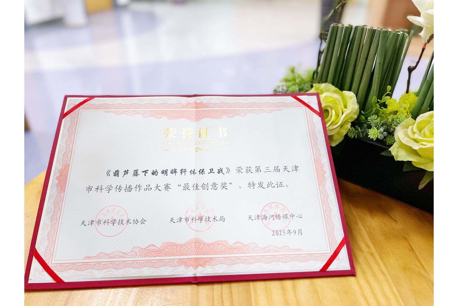 市眼科医院宣传科制作的科普作品《葫芦藤下的明眸纤体保卫战》荣获第三届天津市科学传播作品大赛“最佳创意奖”