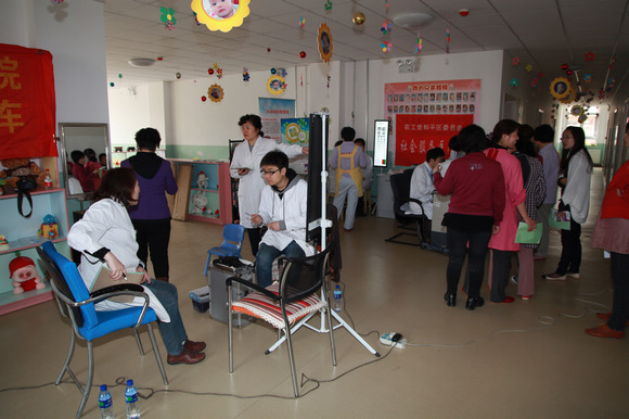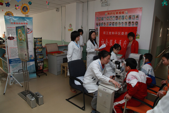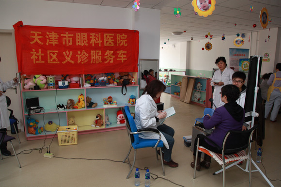 2013年4月24日,我院直通车开赴天津市儿童福利院进行先天性白内障筛查。此次活动为福利院儿童和工作人员数百人进行了全面的眼病筛查和屈光检查。