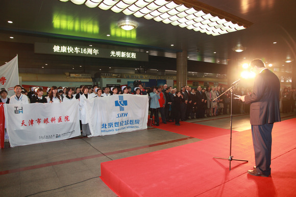 上午11时整,健康快车缓缓驶出站台,承载着天津市眼科医院医护队伍,奔赴今年第一站工作地点河南省新乡市,中华健康快车2013年的扶贫治盲行动就此拉开序幕。