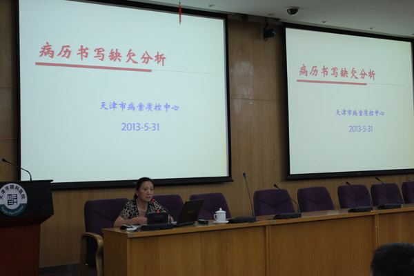 2013年5月31日我院邀请天津市病案质控中心邸岩主任为我院医生进行病历内涵质量控制的培训。