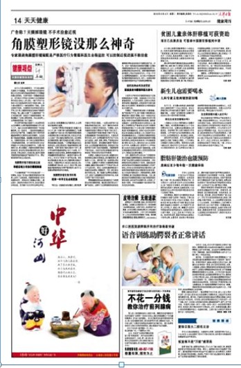 6月6日是全国爱眼日,今年的主题是关爱青少年眼健康。本市眼科医院的眼病专家认为目前近视仍是威胁我国青少年眼健康的最主要眼病。市眼科医院一项最新调查显示,本市重点中学高中生和初中生近视患病率分别达85%以上和55%,一般中学高中生和初中生近视患病率分别为70%和40%。这个庞大的数字让一些机构看到了商机,各种近视治疗机构、近视矫治方法和商品也层出不穷。近年来,角膜塑形镜在近视治疗领域异军突起,“晚上戴白天摘”“7天摘掉眼镜”“不手术治愈近视”这些关于角膜塑形镜的广告更是赚足了近视人群的眼球。那么这些看上去很美的塑形镜广告可信吗?