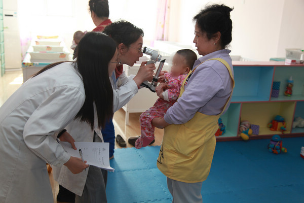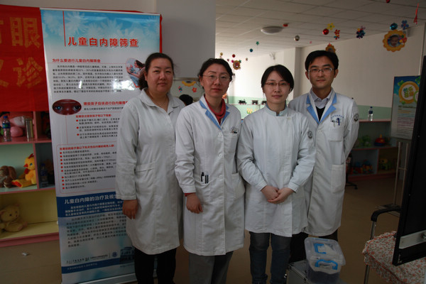先天性白内障筛查与培训项目(PCI)系列报道:2013年4月天津市眼科医院PCI项目组到福利院为儿童免费眼部健康检查、白内障筛查。