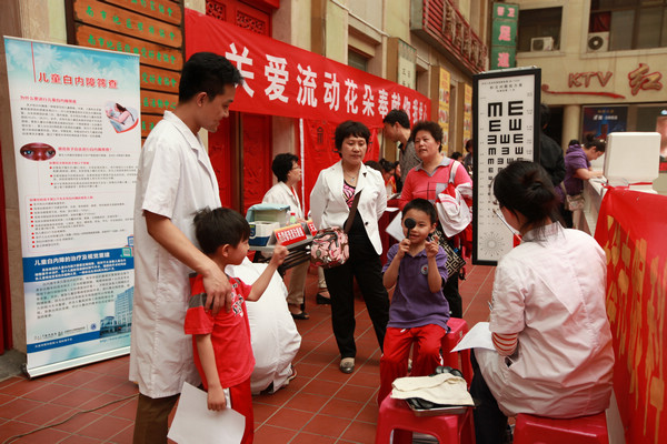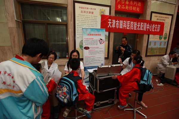 项目组为和平区小学生眼部健康检查、白内障筛查。