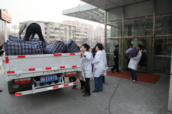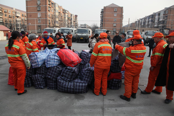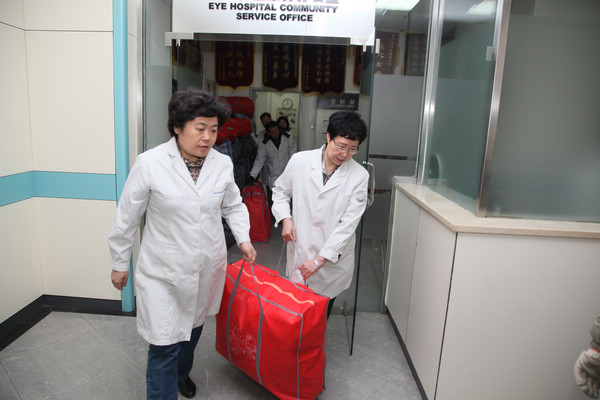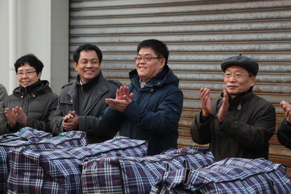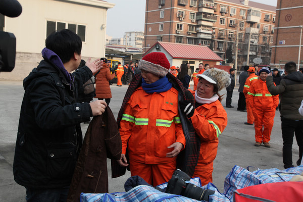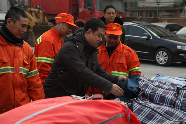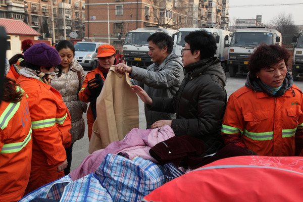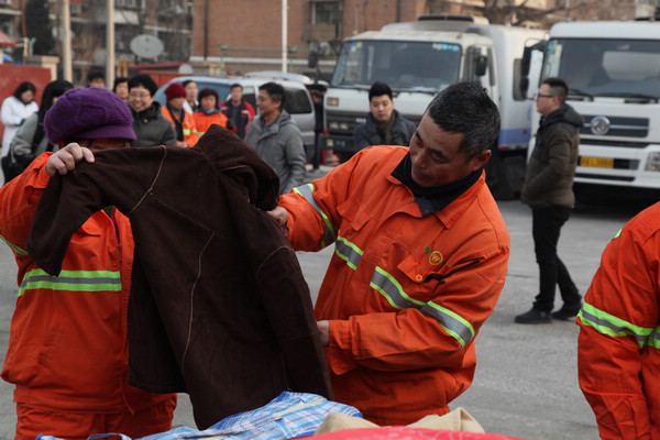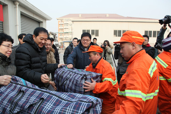 2014年1月27日,“关爱马路天使,心系环卫职工”-天津市眼科医院春节送温暖主题活动在南开区机扫服务中心举行,我院直通车一行在李捷书记的带领下,为那里的环卫职工送上职工捐赠的棉衣及新春的祝福。