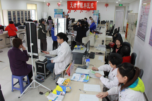 2014.3.12世界青光眼周,天津市眼科医院社区服务直通车来到劝业场街新津里社区为当地居民义诊102人,并发放眼科科普知识宣传材料500余份。