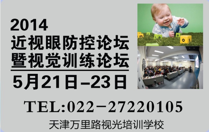 天津万里路视光培训学校将于5月21日~23日举办“2014近视眼防控论坛暨视觉训练论坛”,届时将邀请美国视觉训练学会主席及国内视光专家作精彩演讲,期待您的到来!