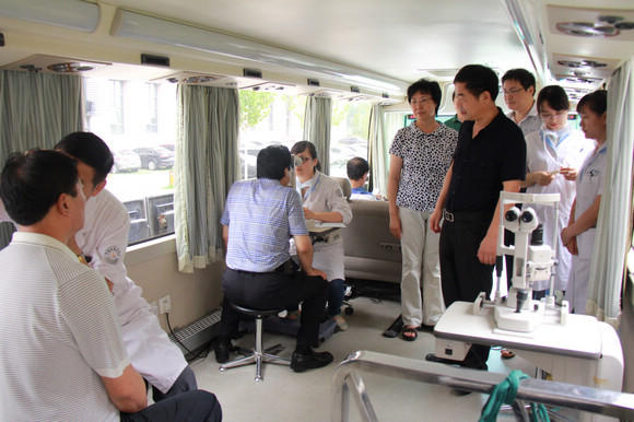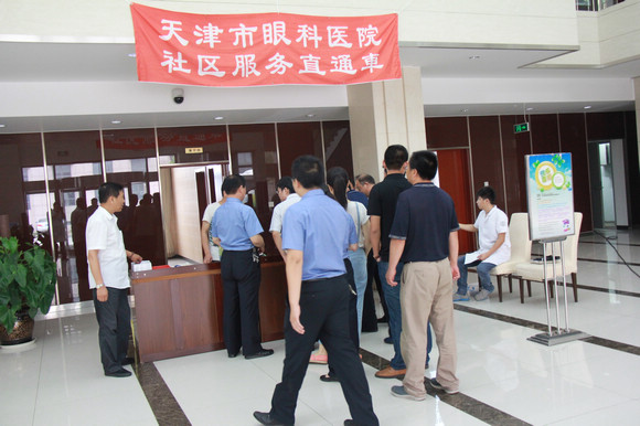 2014.6.25天津市眼科医院社区服务直通车来到蓟县检察院为其职工义诊127人、验光85人、发药34支。