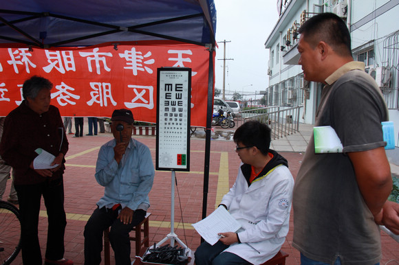 2014年9月24日,天津市眼科医院社区服务直通车来到静大丰堆卫生院,为当地居民义诊61人、验光43人、发药24支、修理清洗眼睛24副。